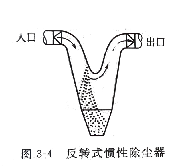 慣性除塵器結(jié)構(gòu)形式多樣,主要有反轉(zhuǎn)式和碰撞式,圖3-4和圖3-5表示的即為反轉(zhuǎn)式和碰撞式慣性除塵器的結(jié)構(gòu)示意。