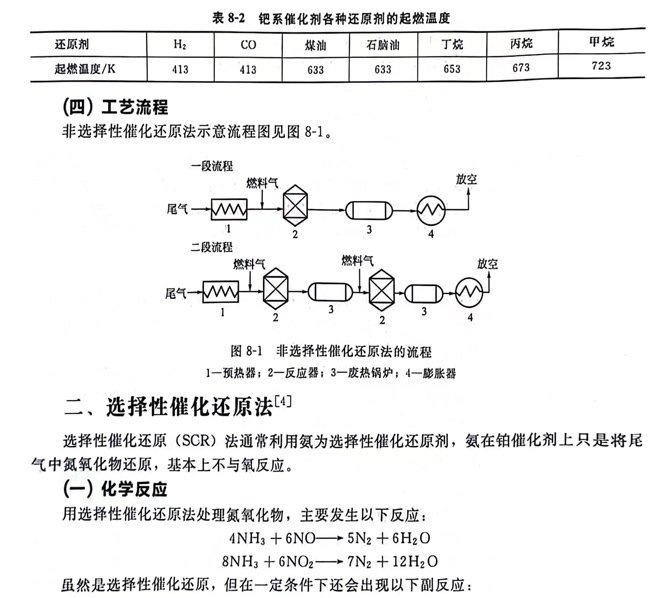 含NOx的氣體,在一定溫度和催化劑的作用下,與還原劑發(fā)生反應(yīng),其中的二氧化氮還原為氮?dú)猓瑫r(shí)還原劑與氣體中的氧發(fā)生反應(yīng)生成水和二氧化碳。還原劑有氫、甲烷、一氧化碳和低烴類化合物。在工業(yè)上可選用合成氨釋放氣、焦?fàn)t氣、天然氣、煉油廠尾氣和氣化石腦油等作為還原劑。一般將這些氣體統(tǒng)稱為燃料氣。